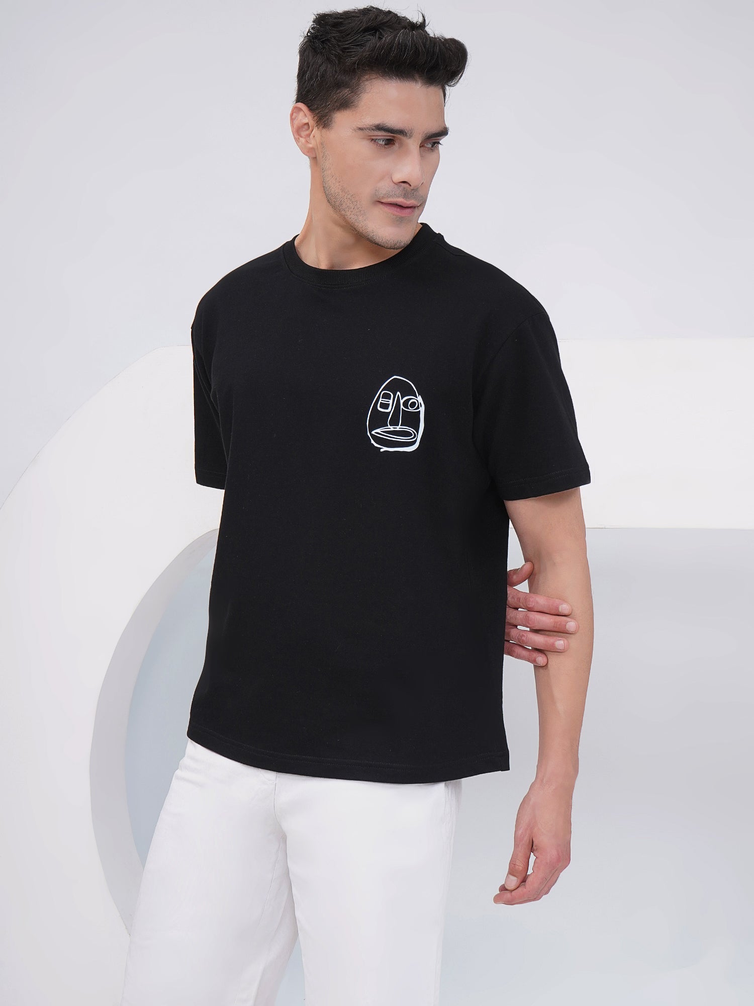Make a bold artistic statement with this black oversized t-shirt featuring striking white abstract face graphics on the back and a minimal face detail on the front. Crafted from premium heavy gauge fabric, this tee blends contemporary art with casual fashion, delivering standout streetwear vibes. The soft yet structured material ensures all-day comfort, while the monochrome palette adds a modern edge.
