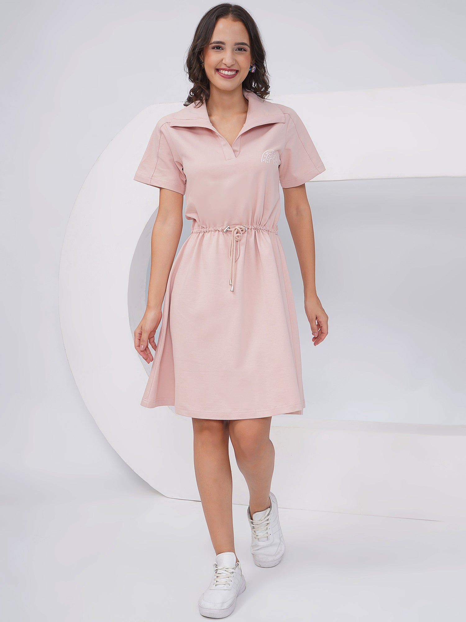Fresh, feminine, and sporty, this Blush Pink Drawstring Waist Polo Collar Dress is designed for easy everyday wear. Crafted from 100% premium cotton, it offers breathable comfort with a soft, smooth finish.