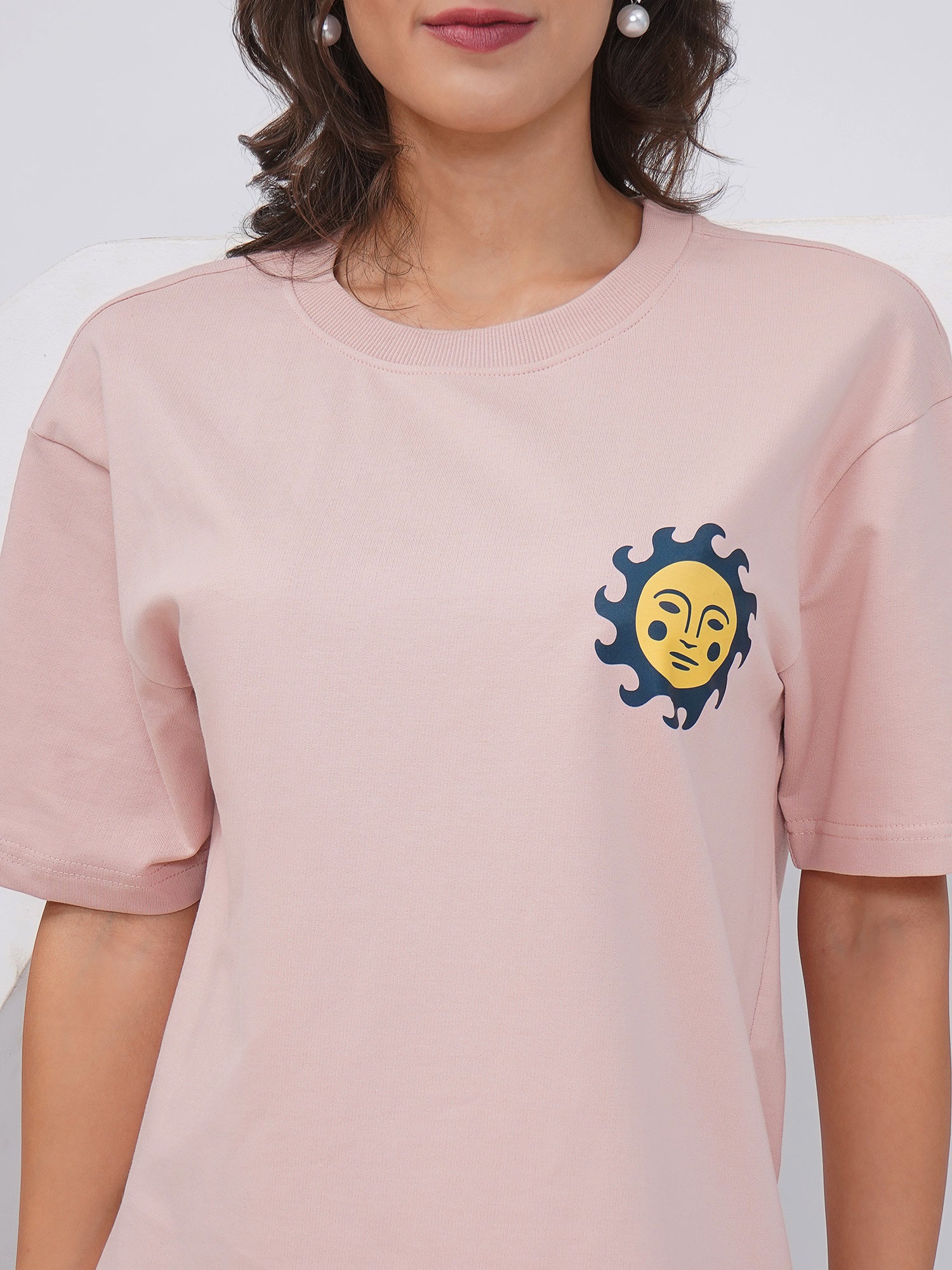 Blush Pink Oversized Sun & Symbols Graphic T-Shirt – KWOT016