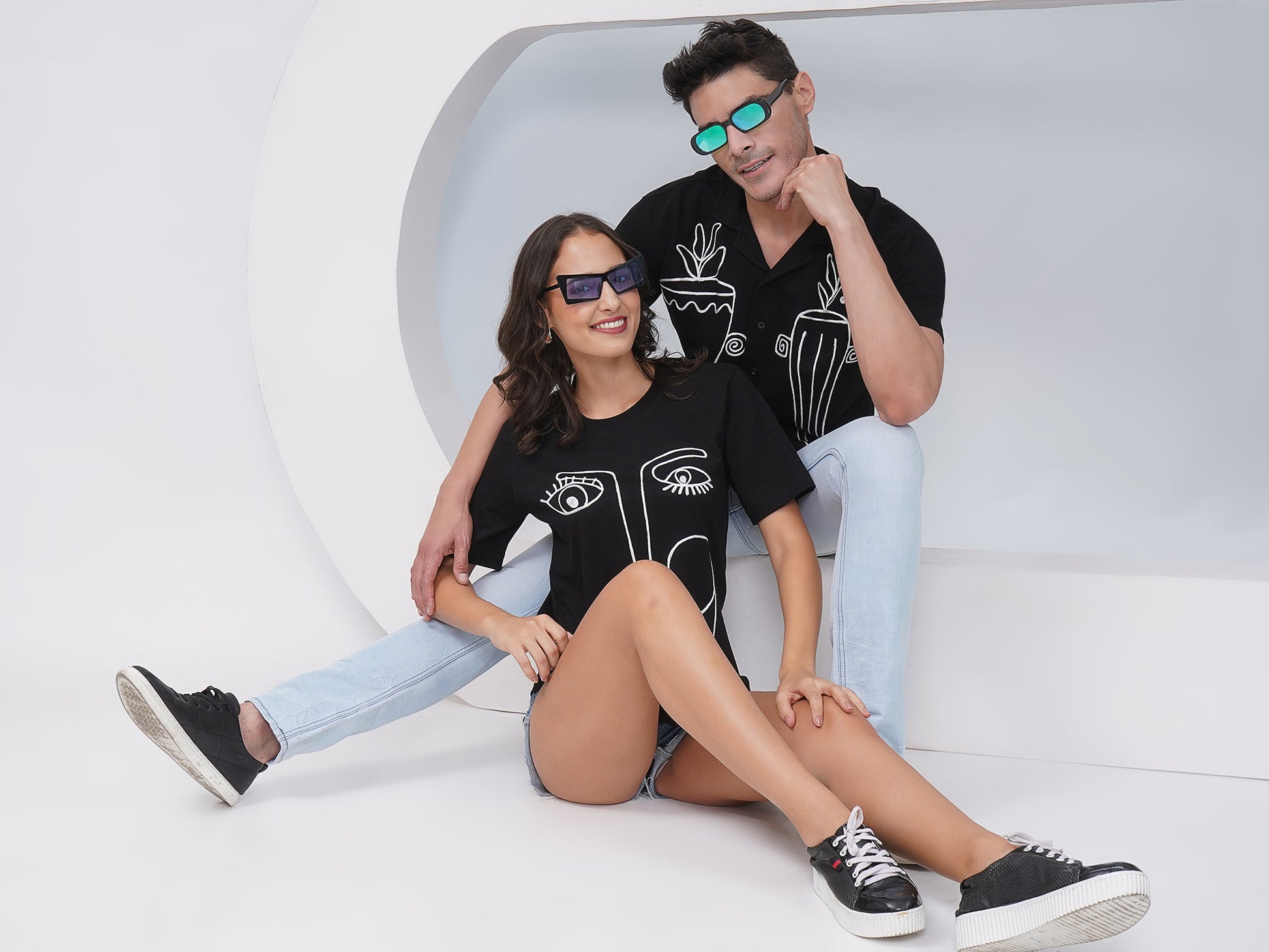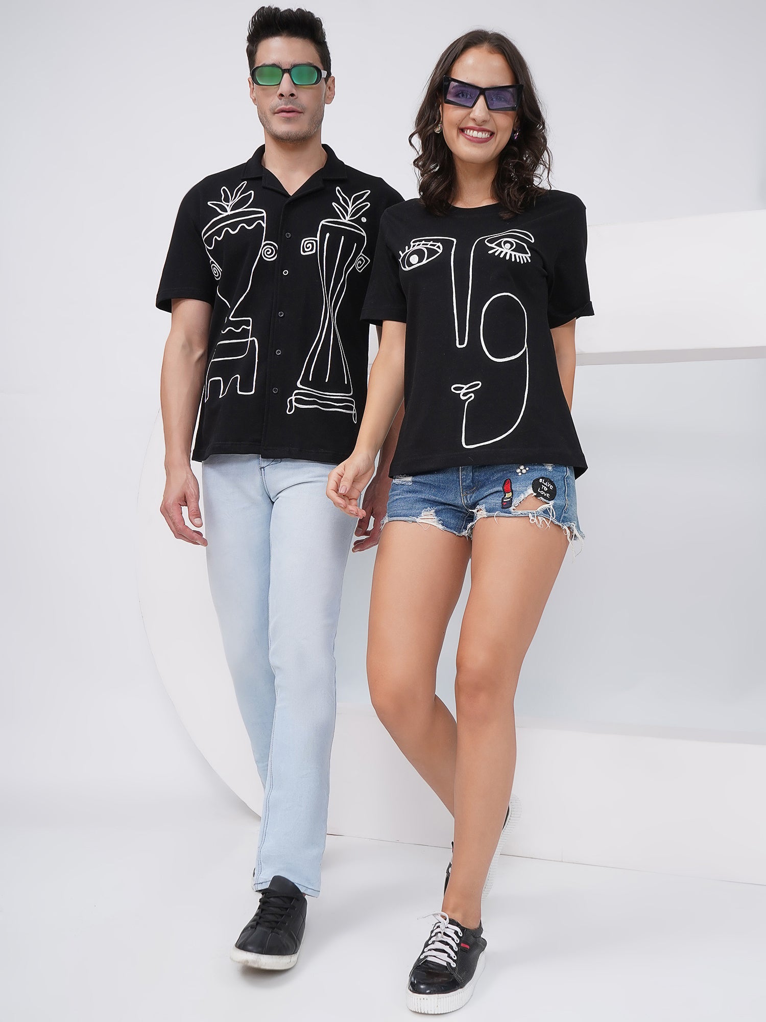 This couple combo is perfect for fashion-forward duos who appreciate art-inspired detailing and coordinated street style.