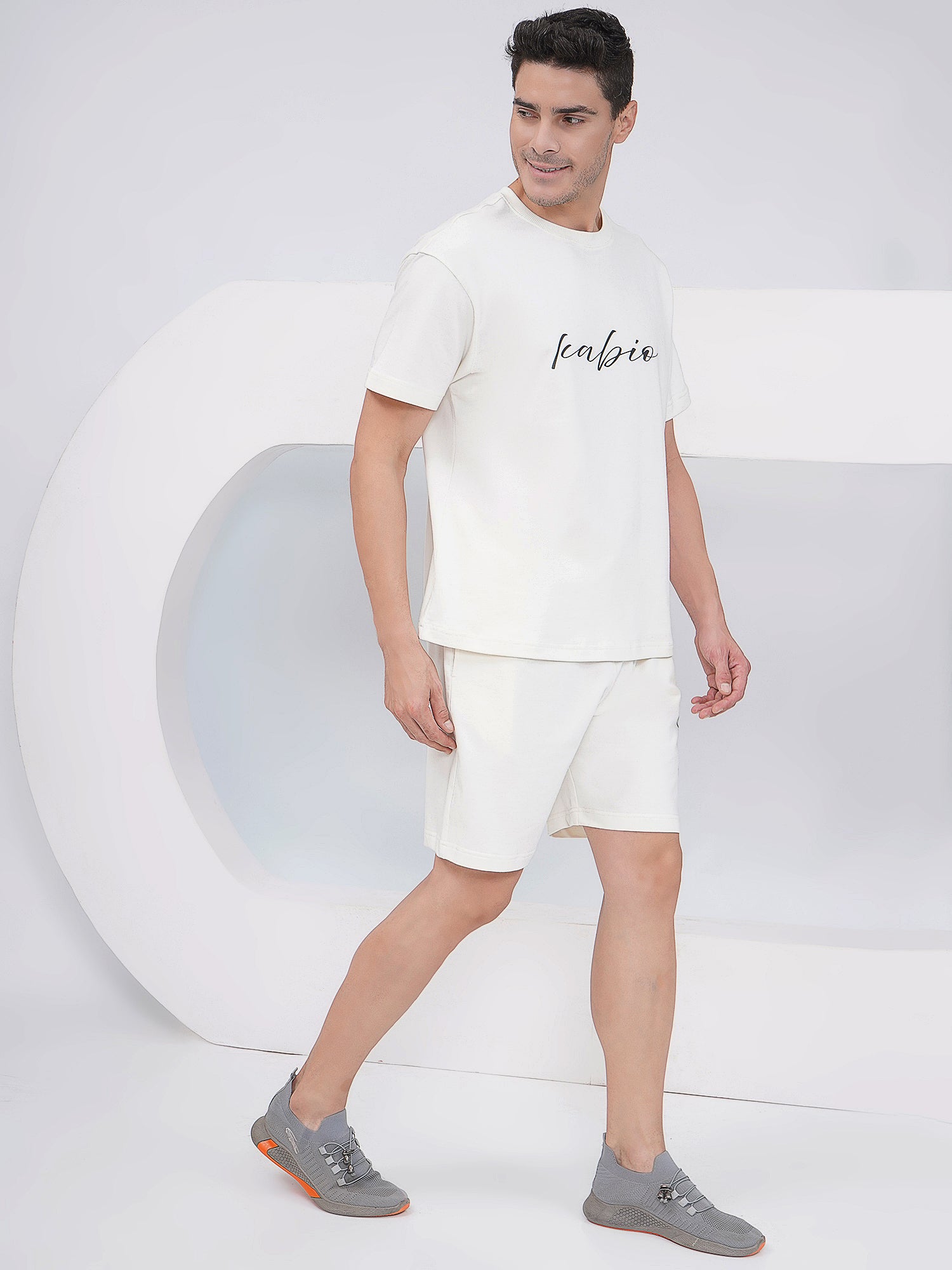 Men’s Off White Cotton Co-Ord Set with Script Print
