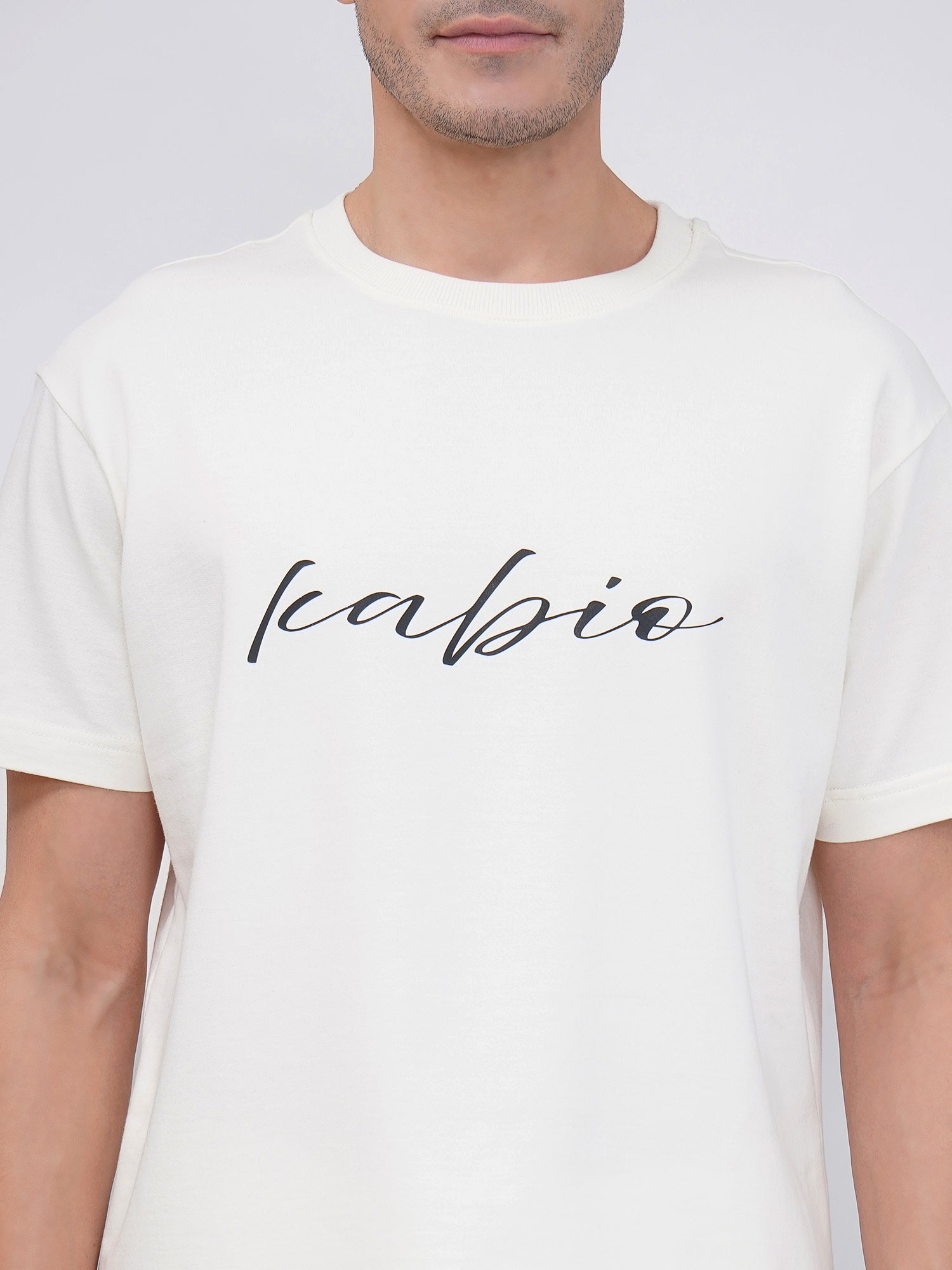 Men’s Off White Cotton Co-Ord Set with Script Print-KMCS001