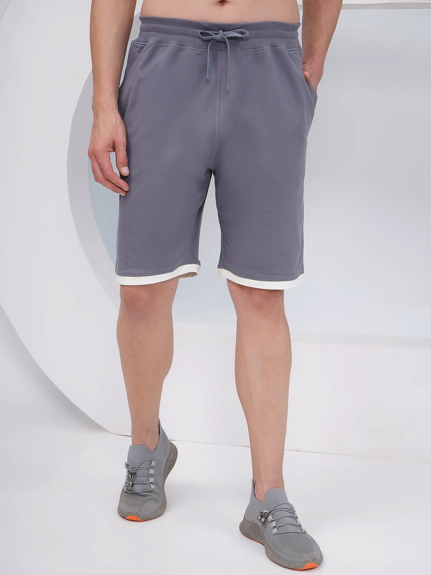 Slate Grey Men's Contrast Hem Cotton Shorts – KMSH002