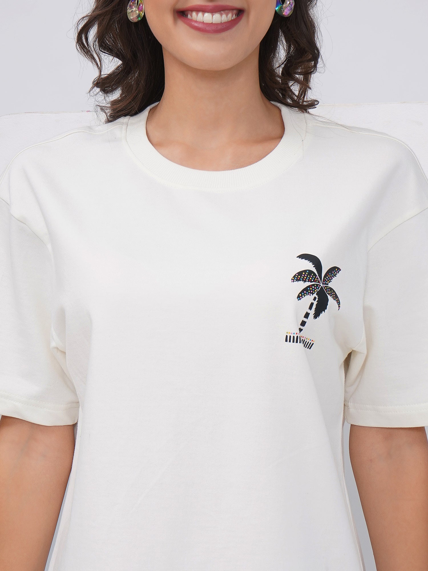 Women's Off-White Tropical Graphic Printed Oversized T-Shirt-KWOT011